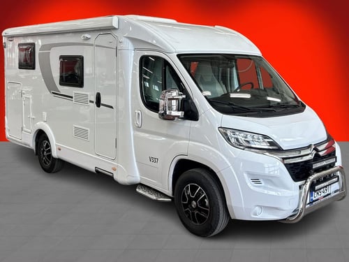 Lue lisää palautusoikeudesta >Kompaktin kokoinen, vain 665 cm pitkä puoli-integroitu matkailuauto tarjoaa erillisvuoteet, jotka saa yhdistettyä parivuoteeksi, sekä niiden alle jäävän suuren, molemmin puolin luukullisen tavaratilan. Talvikäyttöön tämä auto sopii hyvin tehokkaan Trumatic Combi 6E -lämmitysjärjestelmän, sähköisen lattialämmityksen ja eristetyn harmaavesisäiliön ansiosta. Asuinosassa arkea helpottavat keskikeittiö kolmipolttimoisella liedellä ja kaasulla sekä sähköllä toimivalla jääkaapilla, suihkun kääntöseinällä varustettu WC- ja suihkutila sekä mukavuutta tuovat ilmastointi ajotilassa, vakionopeudensäädin ja pysäköintikamera.