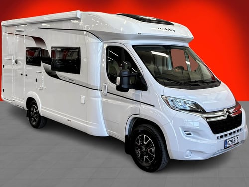Lue lisää palautusoikeudesta >Vähän ajettu, vain 15 900 kilometriä kulkenut puoli-integroitu matkailuauto tarjoaa poikkeuksellisen käytännölliset tilat jopa kuudelle matkustajalle ja kuudelle yöpyjälle, sillä varustukseen kuuluu kerrossänky kahdelle, sähkötoiminen laskuvuode sekä sohvaryhmästä levitettävä parivuode. Mukavuutta ja matkanteon helppoutta tuovat muun muassa navigaattori, pysäköintikamera, vakionopeudensäädin, ajotilan ilmastointi, korkeussäädettävät ohjaamon istuimet käsinojilla sekä Trumatic Combi 6E lämmitys kaasulla ja sähköllä. Erityisen houkutteleva yksityiskohta on 1500 W invertteri, joka lisää omavaraisuutta matkalla, ja kokonaisuuden viimeistelevät markiisi, kahden polkupyörän pyöräteline, automaattinen kaasupullonvaihtaja sekä eristetty harmaavesisäiliö.