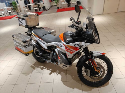 Lue lisää palautusoikeudesta >Vuoden 2024 kaksisylinterinen matkaenduro tarjoaa 799 cm³ moottorin ja 95 hevosvoiman suorituskyvyn, jonka lukkiutumattomat jarrut ja luistonesto pitävät hallinnassa kaikissa olosuhteissa. Pitkille matkoille tämä pyörä on varustettu ajotilan valinnalla, vakionopeudensäätimellä, kahvanlämmittimillä, penkinlämmittimellä sekä käytännöllisillä sivulaukuilla ja takalaukulla. Yksilöllisenä etuna tässä kappaleessa on juuri tehty huolto ja uudet renkaat, jotka tekevät tästä käytännössä valmiin kumppanin seuraavalle seikkailulle.