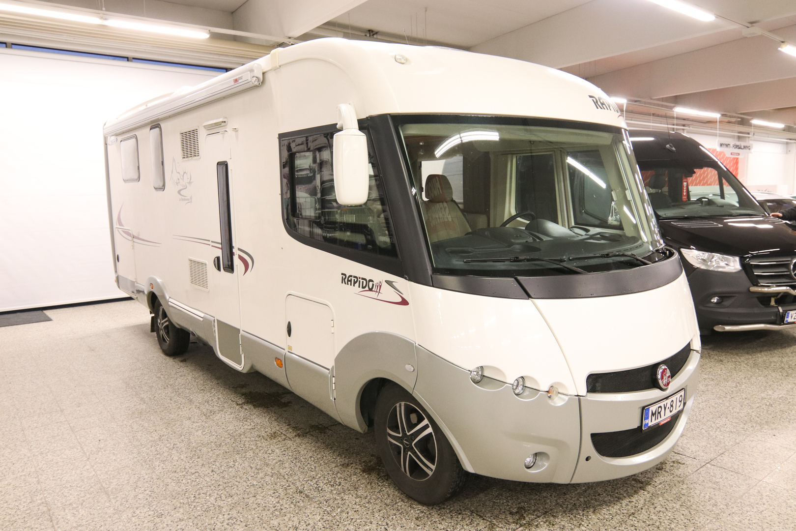 Fiat 2,3 130 - Alde, saarekevuode, alaslaskettava ylävuode, markiisi, pyöräteline ym.