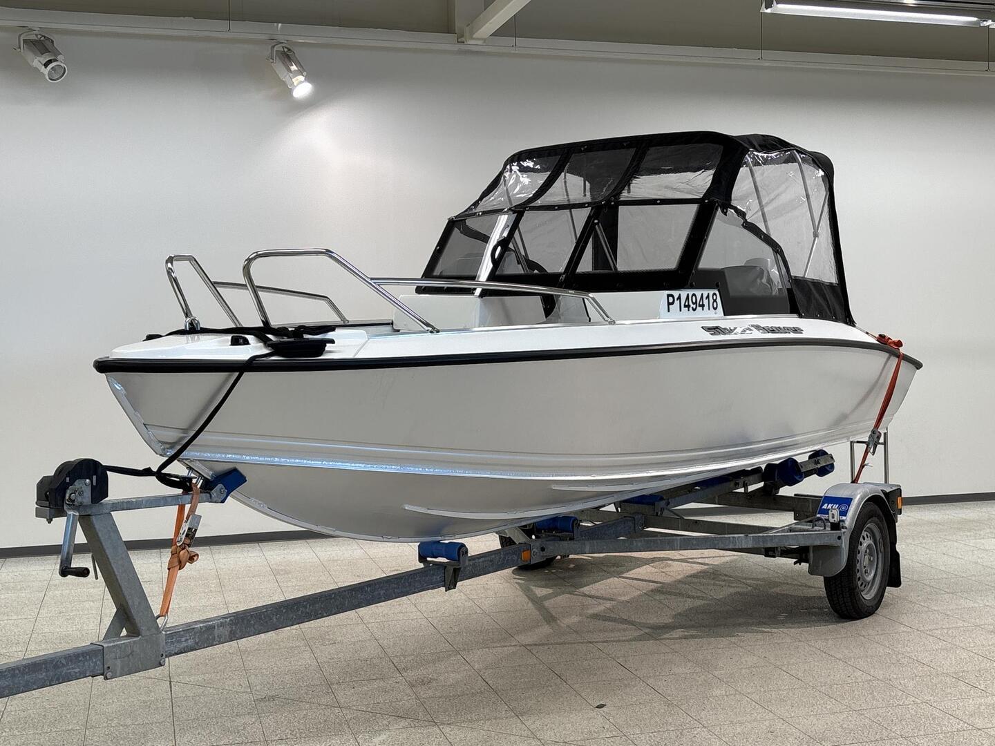 Tässä lähes uudenveroisessa moottoriveneessä on poikkeuksellisen vähän käyttötunteja, vain 48 tuntia, mikä tekee siitä erityisen kiinnostavan vaihtoehdon. Varusteluun kuuluvat karttaplotteri, kaikuluotain, ajokuomu, kulkuvalot, pilssipumppu ja uimaportaat, jotka tekevät vesillä liikkumisesta sujuvaa ja turvallista. Mukana tuleva venetraileri sekä erilliset etuistuimet ja viiden henkilön matkustajakapasiteetti viimeistelevät kokonaisuuden käytännölliseksi vapaa ajan veneeksi.