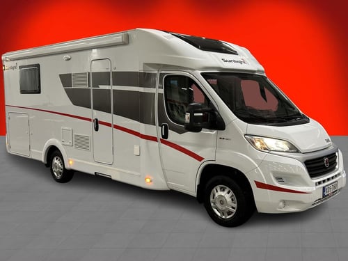 Lue lisää palautusoikeudesta >Vuoden 2018, vain 45 000 km ajettu tilava puoli-integroitu matkailuauto tarjoaa harvinaisen kätevän pohjaratkaisun: sekä saarekevuoteen takana että alas laskettavan parivuoteen oleskeluryhmän yläpuolella, yhteensä viisi rekisteröityä istuin- ja vuodepaikkaa. Mukavuudesta vastaa Trumatic Combi 6E -lämmitysjärjestelmä sähköpatruunalla sekä sähköinen lattialämmity. Ohjaamon panoraamakattoikkuna, kääntyvät istuimet, navigointi, peruutuskamera ja kolmelle pyörälle tarkoitettu pyöräteline tekevät matkoista sekä helppoja että nautinnollisia.
