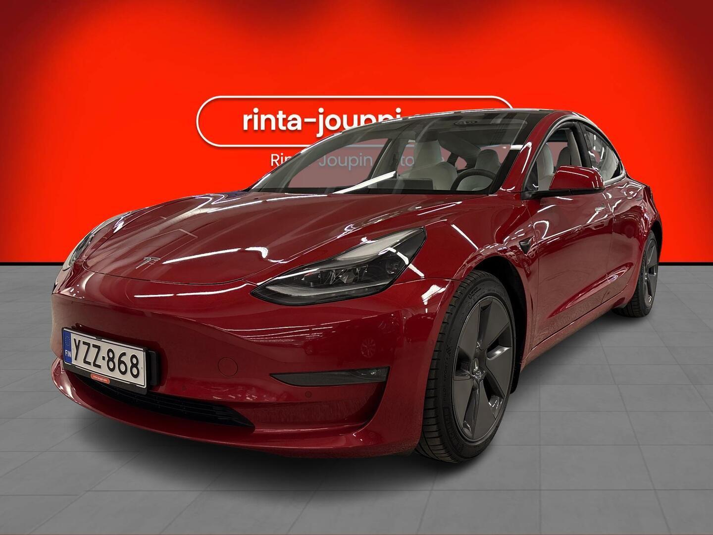 Lue lisää palautusoikeudesta >Tyylikäs punainen, täyssähköinen neliveto-sedan 351 hevosvoimalla ja jopa 560 km:n sähköisellä kantamalla tarjoaa sekä ripeän suorituskyvyn että huolettomat pitkät ajomatkat. Tämän yksilön erikoisuutena on FSD-autopilot -varustus, joka tuo ajamiseen edistyksellisimmät kuljettajaa avustavat järjestelmät ja tekee arjesta kevyempää. Lasikatto, nahkasisusta, premium-audio, langaton puhelimen lataus sekä edessä ja takana olevat penkinlämmittimet ja lämmitettävä ohjauspyörä viimeistelevät erittäin mukavan ja modernin matkustamon.